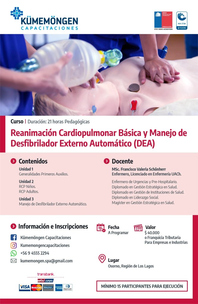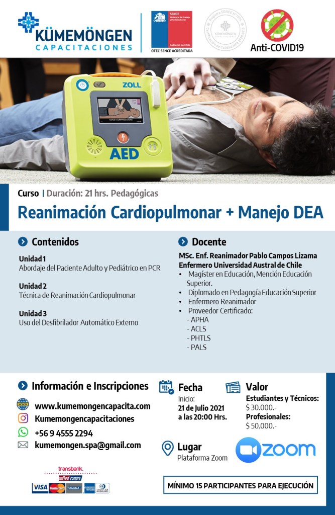 Reanimación Cardiopulmonar + Manejo DEA 21 Hrs.