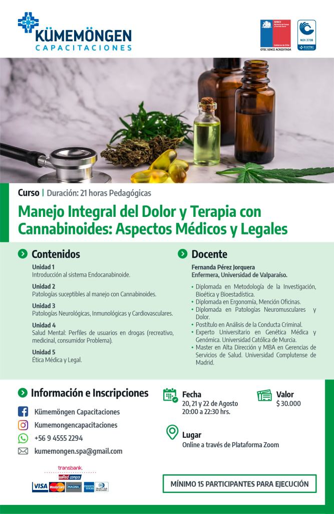 Contribuir al conocimiento de los cannabinoides como opción al manejo integral del dolor a través de la adquisición de conocimientos, habilidades y destrezas que permitan desarrollar competencias de criterio clínico en la gestión del cuidado de personas con dolor.