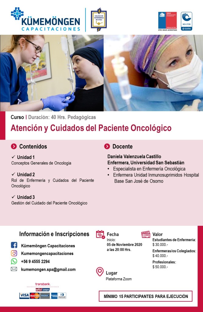 Contribuir a desarrollar habilidades que permitan a los profesionales y estudiantes Enfermeros/as aplicar en la práctica clínica las herramientas metodológicas entregadas de la Gestión del Cuidado en la Enfermería Oncológica en los diferentes servicios donde se desempeñen.