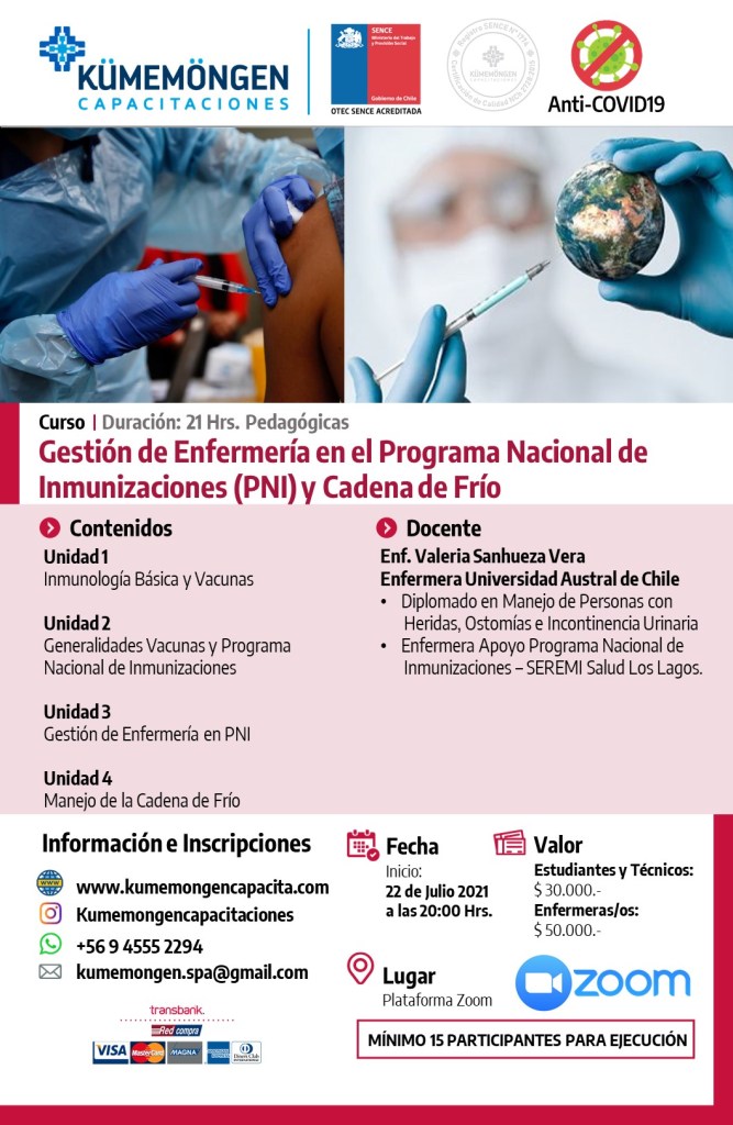 Gestión de Enfermería en el Programa Nacional de Inmunizaciones y Cadena de Frío 21 Hrs.