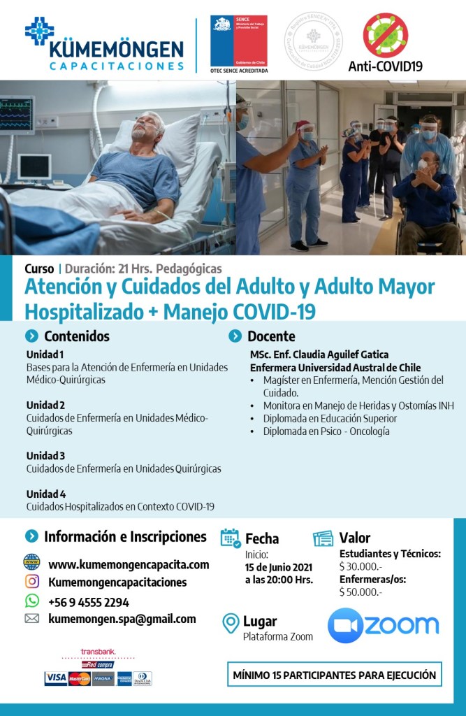 Atención y Cuidados del Adulto y Adulto Mayor Hospitalizado + Manejo COVID – 19 21 Hrs.